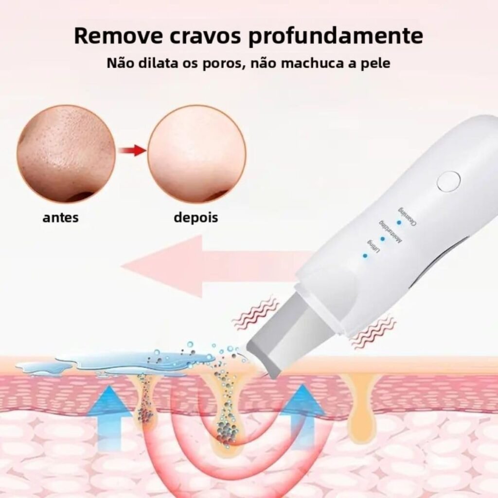 Um dos maiores pesadelos de quem tem pele oleosa ou mista é a extração manual de cravos que muitas vezes resulta em marcas cicatrizes e inflamações severas. A espátula ultrassônica resolve esse problema de forma magistral. Ao utilizar o modo de limpeza as vibrações amolecem o sebo acumulado dentro do poro permitindo que ele deslize para fora com o simples passar da espátula. Não há necessidade de pressão excessiva ou uso das unhas o que preserva a integridade dos capilares sanguíneos e evita que você fique com o rosto vermelho por dias após a limpeza. É a solução ideal para manter a zona t do rosto sempre limpa e com os poros minimizados.