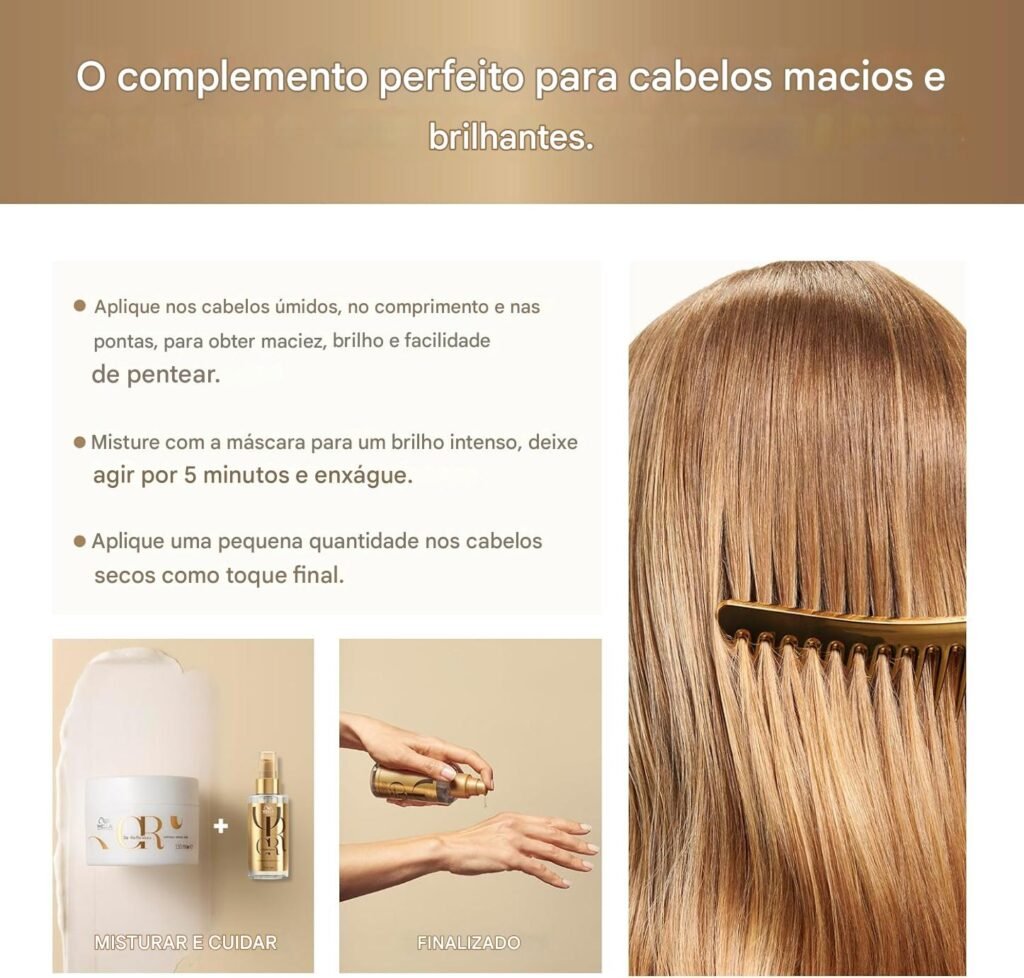 Essa é uma das máscaras mais amadas pelos cabeleireiros e entrega exatamente o que o nome promete: reflexos de óleo. Com extrato de chá branco e óleo de camélia, ela promove uma maciez incrível. É o luxo profissional acessível para usar em casa.