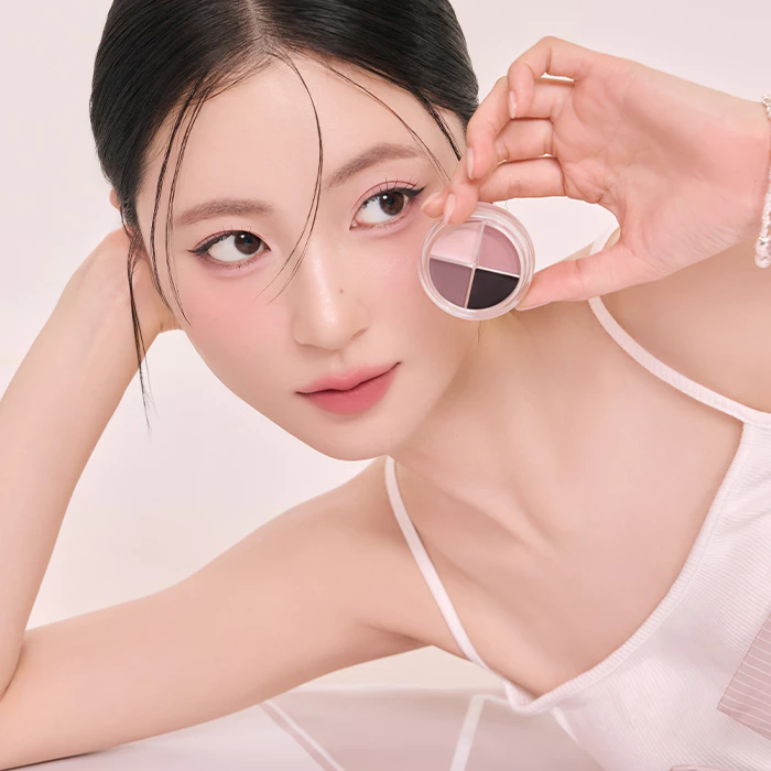 As paletas de sombras coreanas são verdadeiros objetos de desejo pela sua apresentação e pela qualidade dos seus brilhos. A aplicação de sombra geralmente começa com uma cor base em tom de bege ou pêssego que é espalhada por toda a pálpebra móvel para uniformizar o tom da pele. Em seguida aplica-se uma cor de transição um pouco mais escura apenas no canto externo e rente aos cílios para dar uma leve definição sem criar marcações pesadas no côncavo.